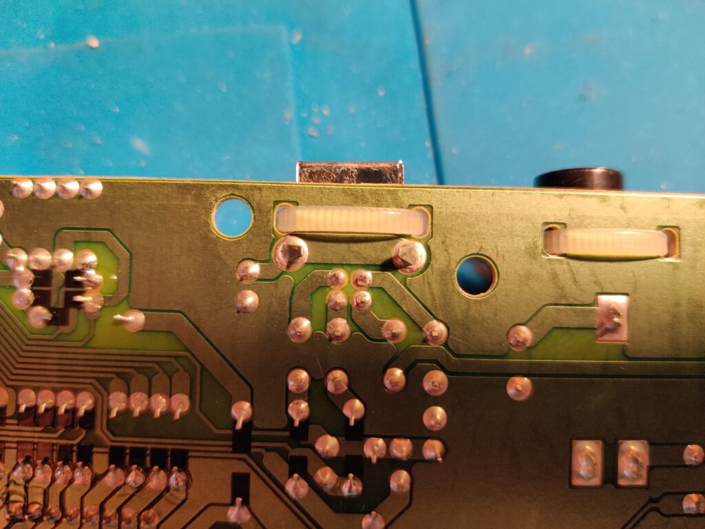 Les soudures sont nettoyées puis refaites (je n’ai pas pensé à reprendre une photo), le clavier est remonté après nettoyage.