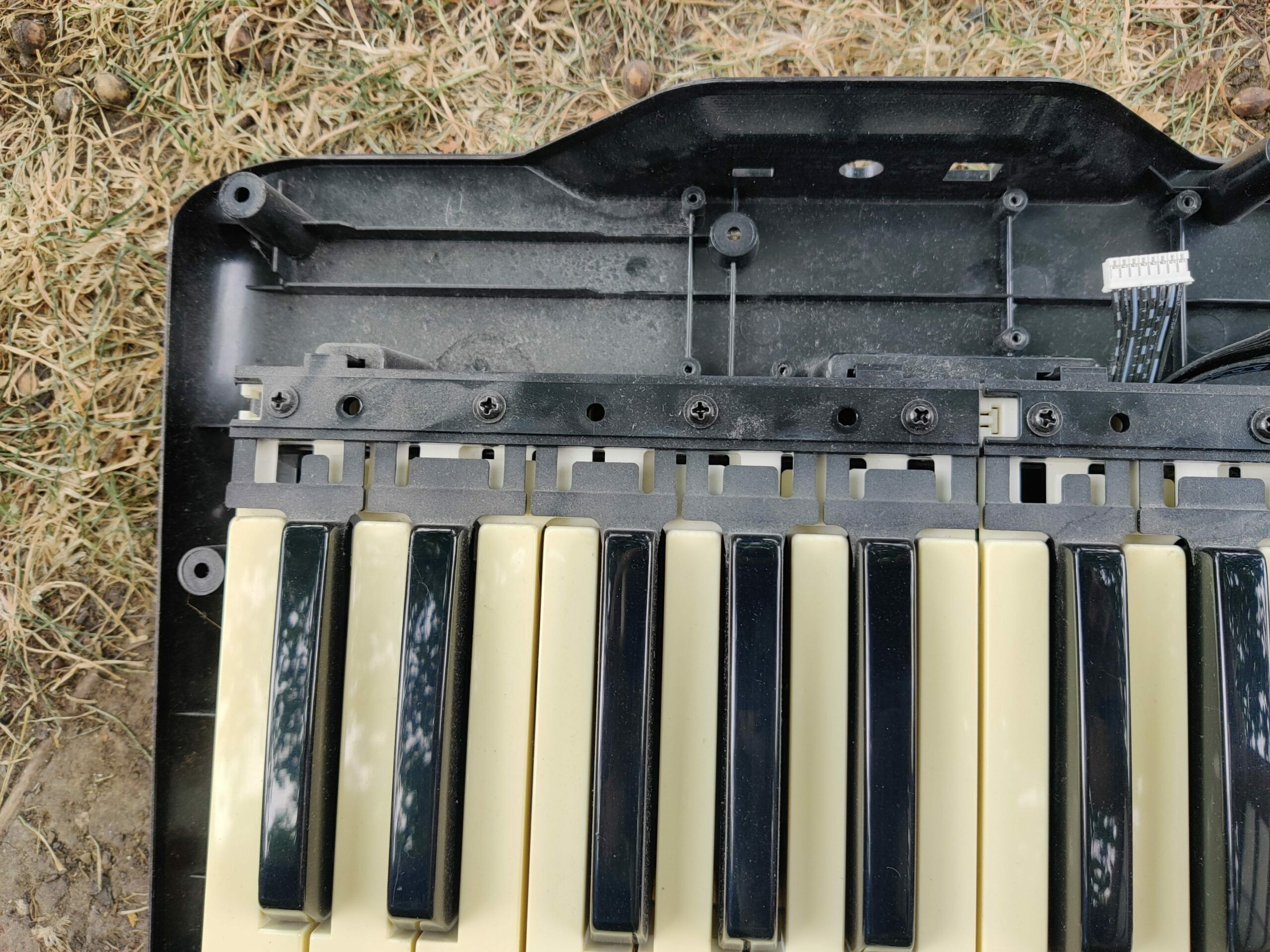Le dos du clavier présente un ensemble de vis qui font le tour de l’appareil.